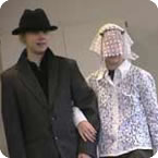 und eine Klezmermusikgruppe steht. Die Musik der Klezmorim