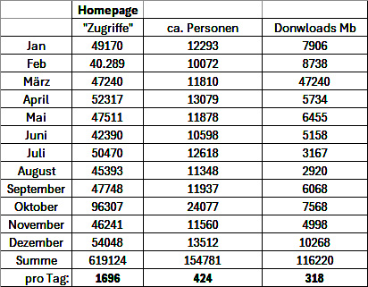 Die komplette Downloadstatistik als Exceltabelle.
